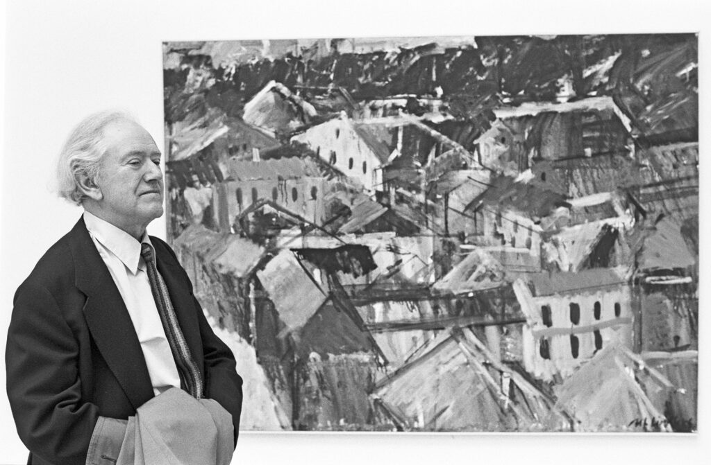 Start Utställningar Alf Lindberg Alf Lindberg framför en av sina målningar Alf Lindberg 28.5 – 28.8 1983 Alf Lindberg