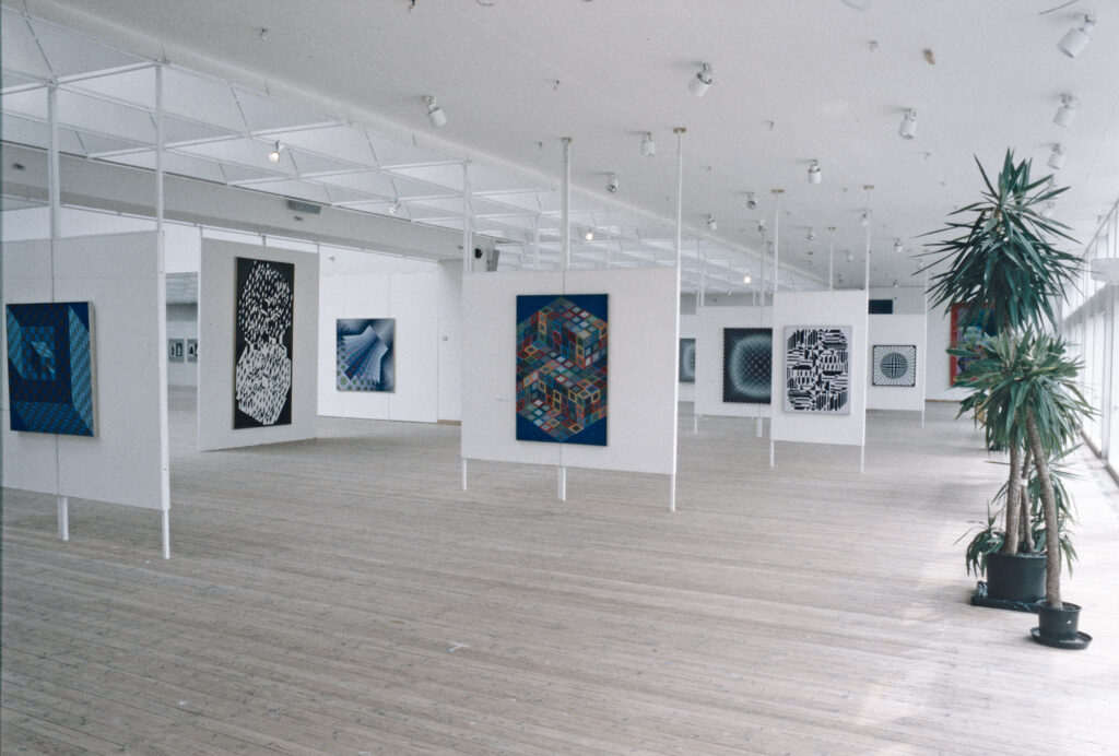 Retrospektiv utställning av Op-konstens fader, som visade verk från 1920-talet fram till slutet av 1970-talet. Vasarely föddes i Ungern men var från 1930 bosatt utanför Paris. Som en av aktörerna för multikonst ville han att konsten skulle nå ut till alla. I bild till höger ses Victor Vasarely uppskatta konsthallschef Eje Högestätts op-mönstrade slips stort.